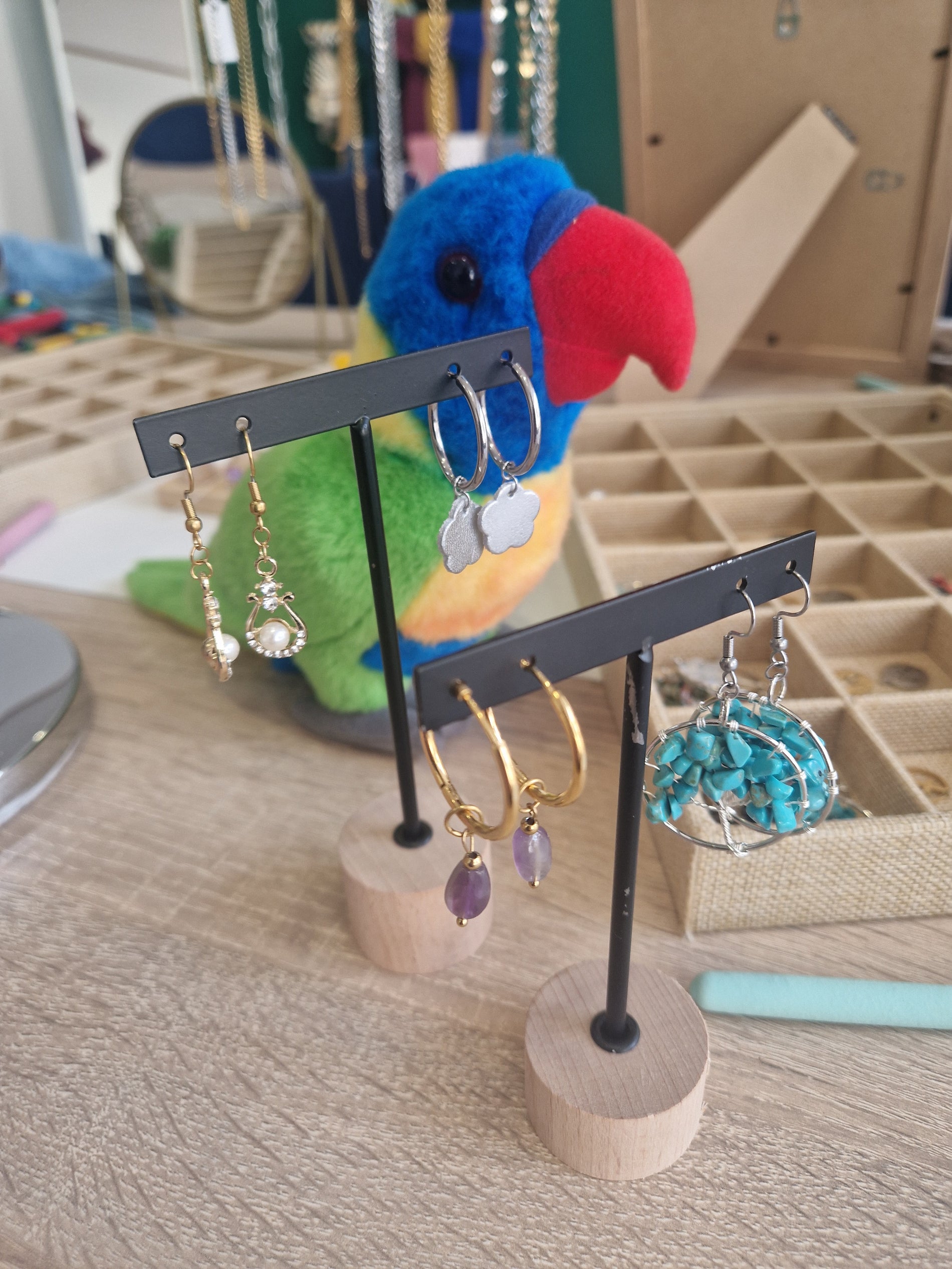 A partir des breloques ci-dessus, vous pouvez également composer vos boucles d'oreilles, dont des exemples vous sont présentés en première photo.
