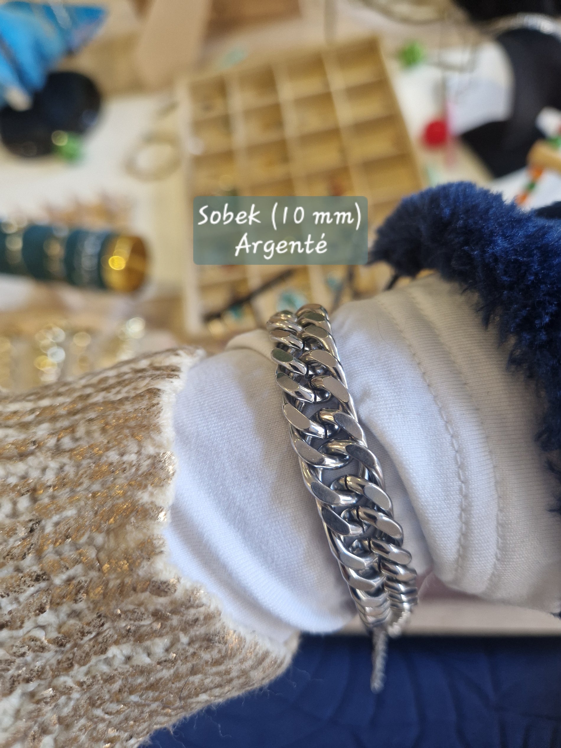 Vous souhaitez faire un cadeau unique ? Nous pouvons vous aider à réaliser un collier et/ou un bracelet, de la chaîne jusqu’aux pendentifs qui le composeront.