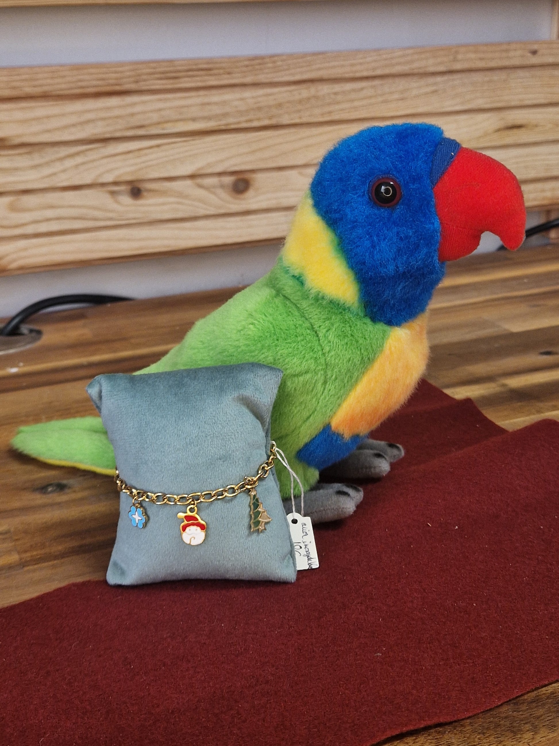 Bracelet réglable sur chaîne agrémenté de breloques évoquant Noël : père Noël, étoile du berger et sapin.