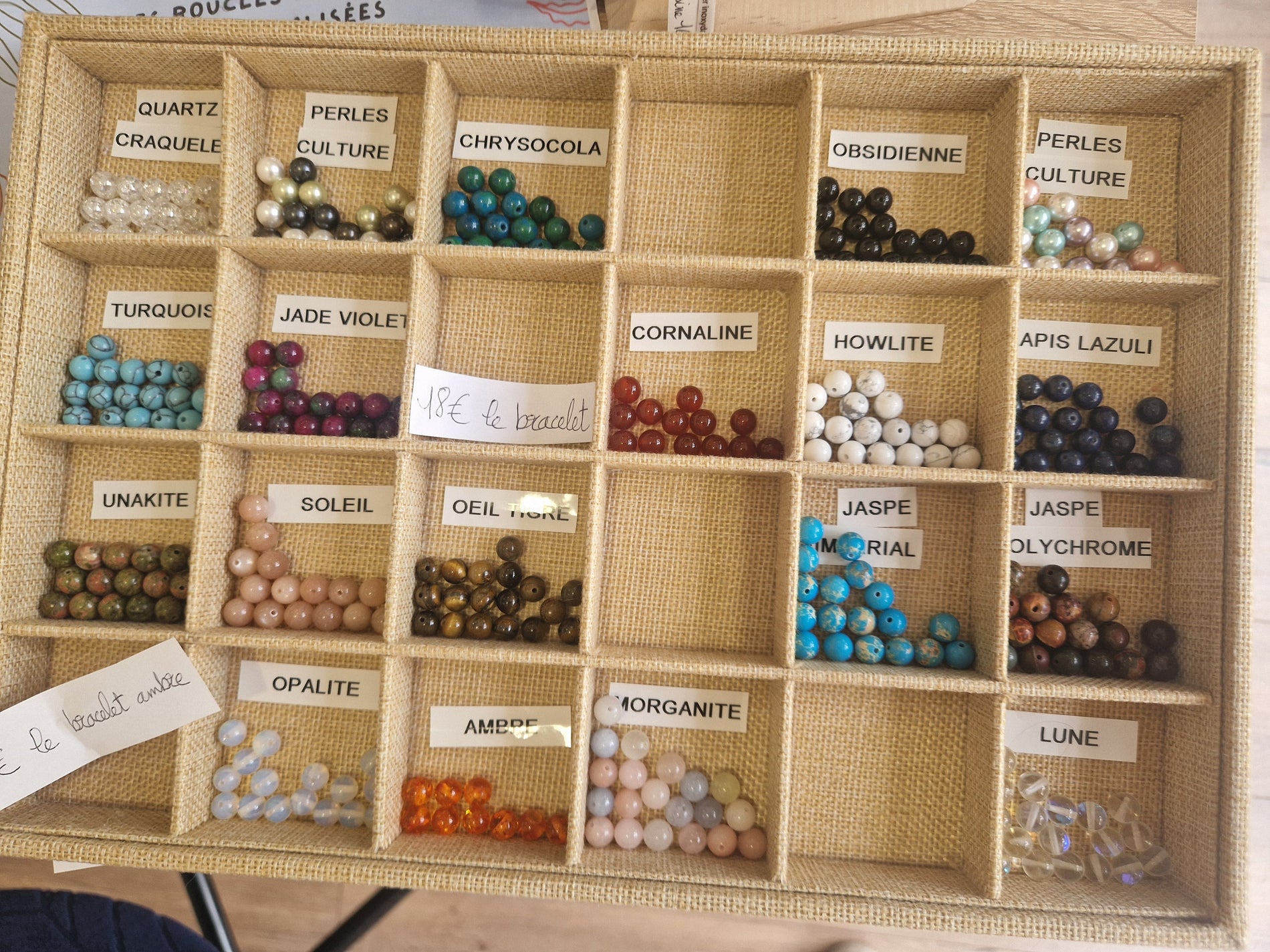 Prix : 18 € le bracelet, exception faite du bracelet avec que des perles ambre, qui est à 30 €.