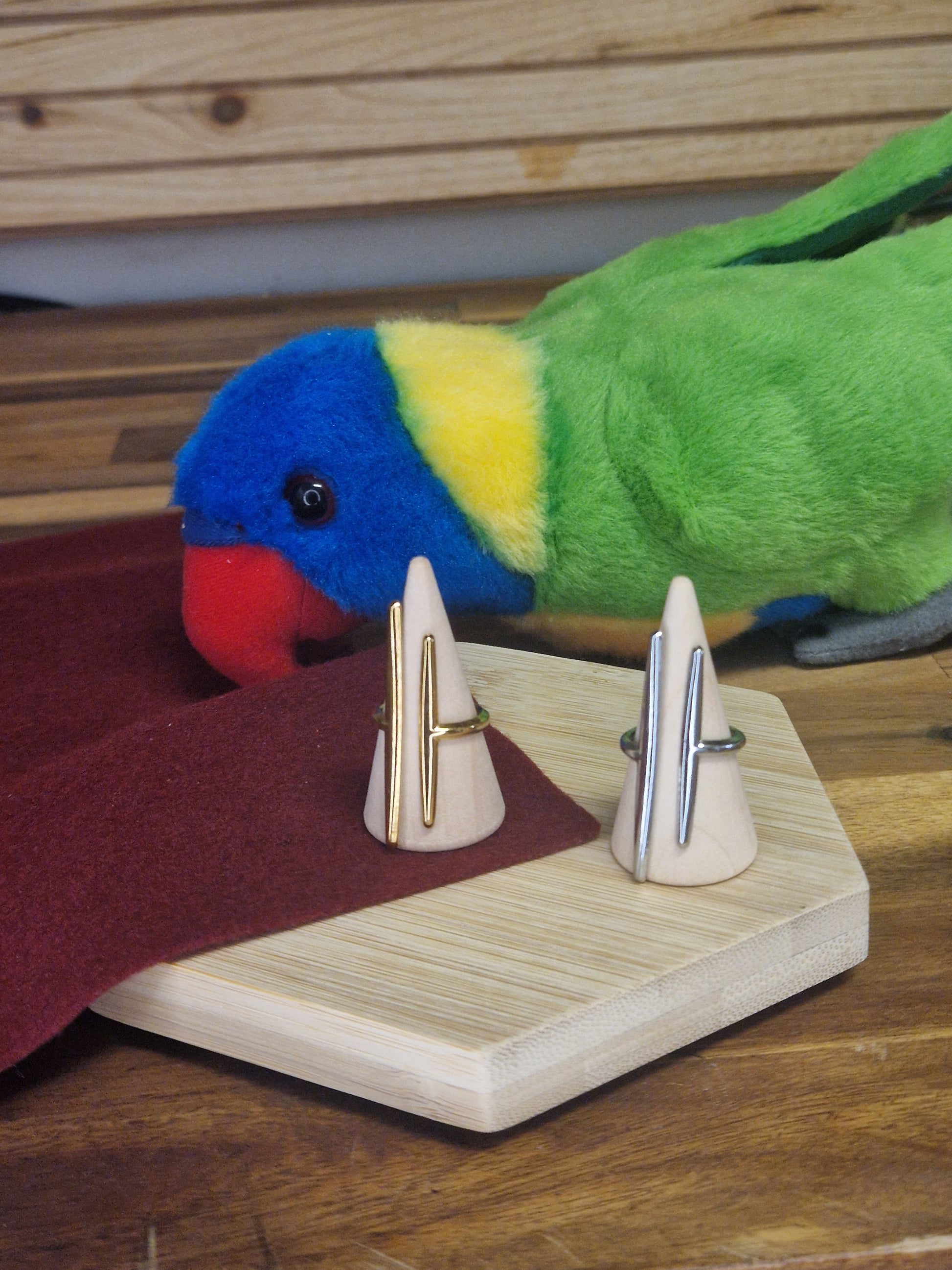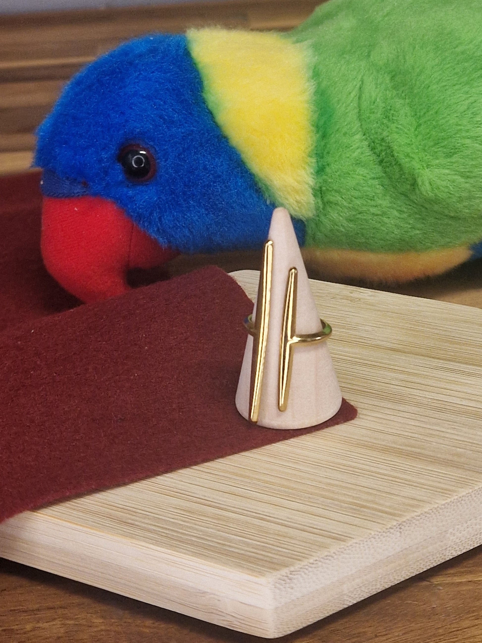 Bague ajustable ouverte vers l'avant avec des longs pics de part et d'autre.