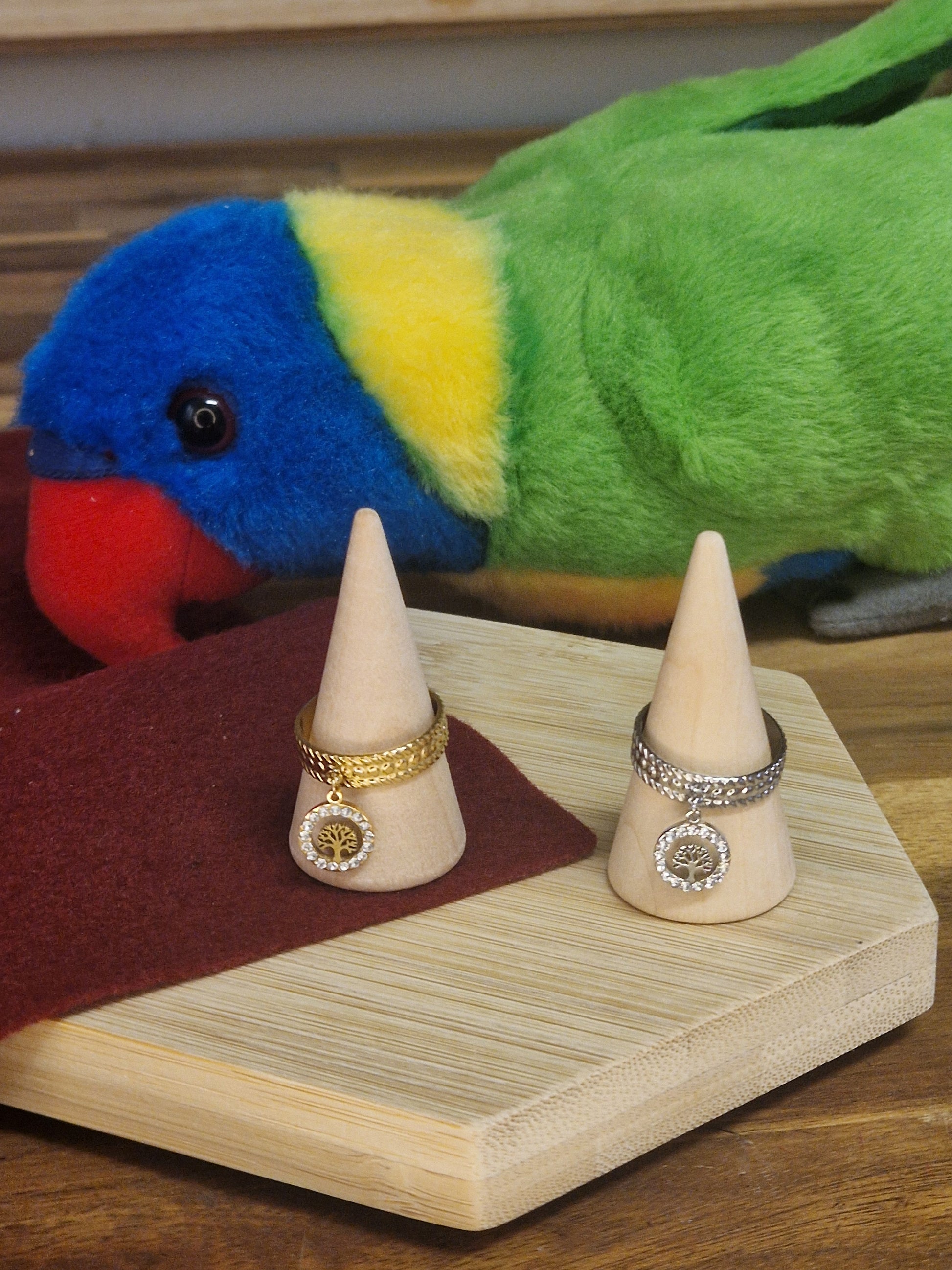 Bague ajustable avec une breloque arbre de vie entouré de strass.