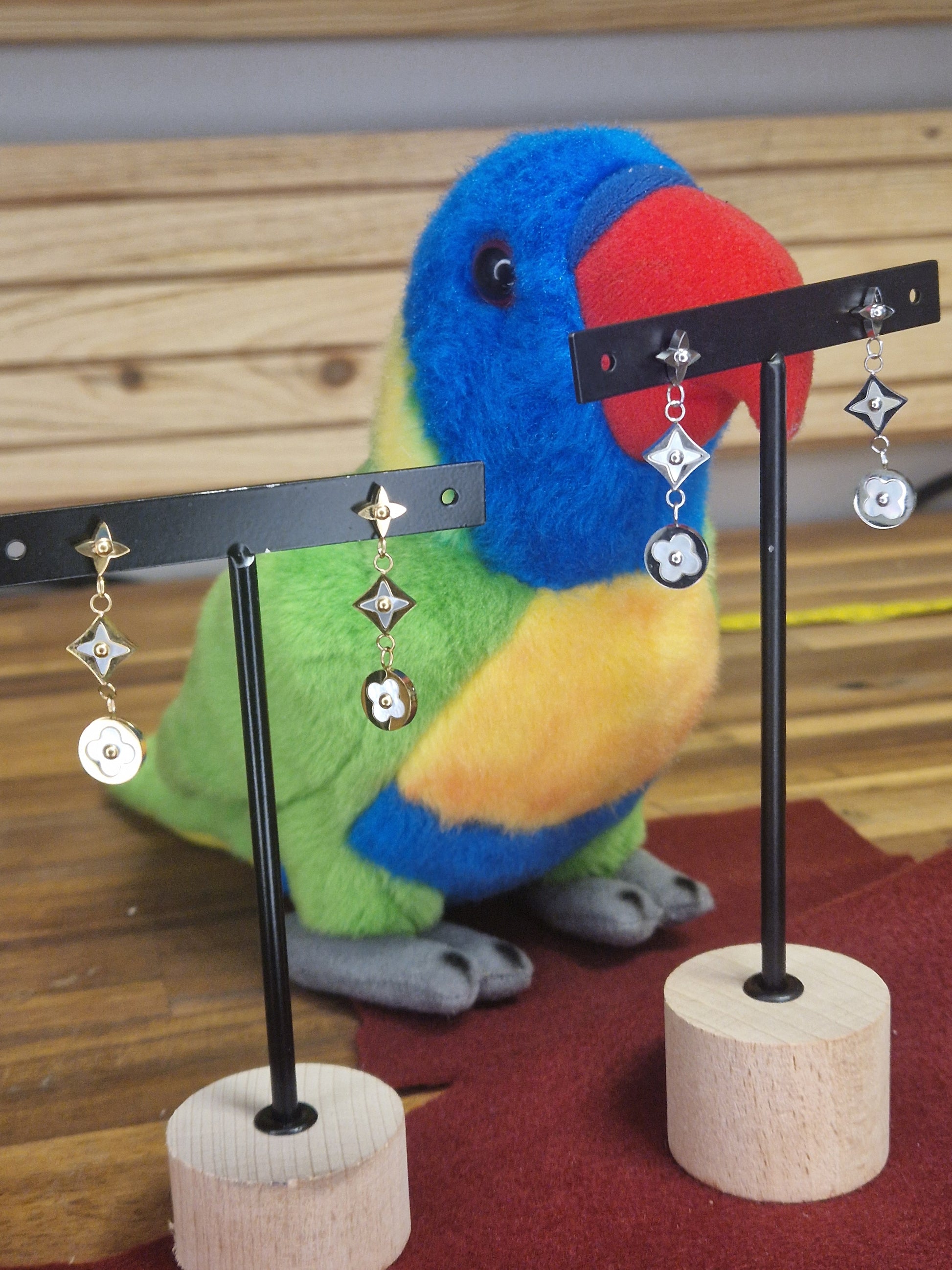 Boucles d'oreilles pendantes avec trèfles et fleur blancs inspirés d'une grande marque.