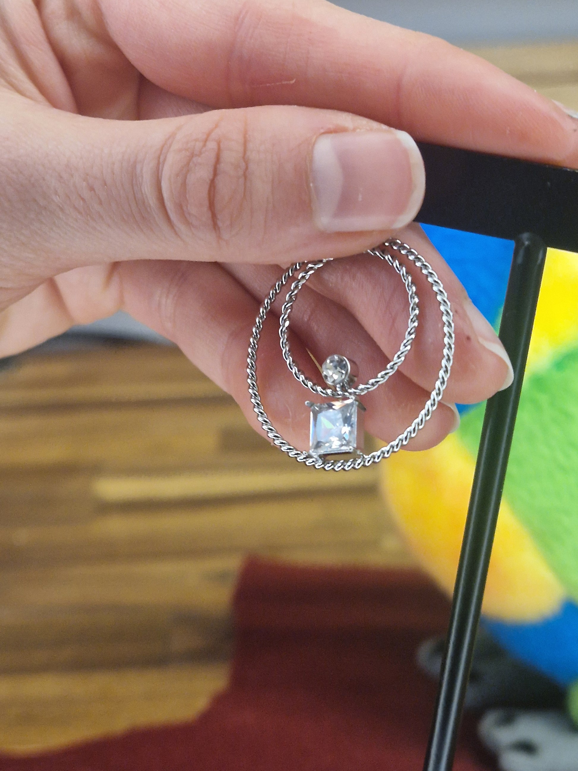 Boucles d'oreilles cercles strass et cristal transparent, en acier inoxydable.