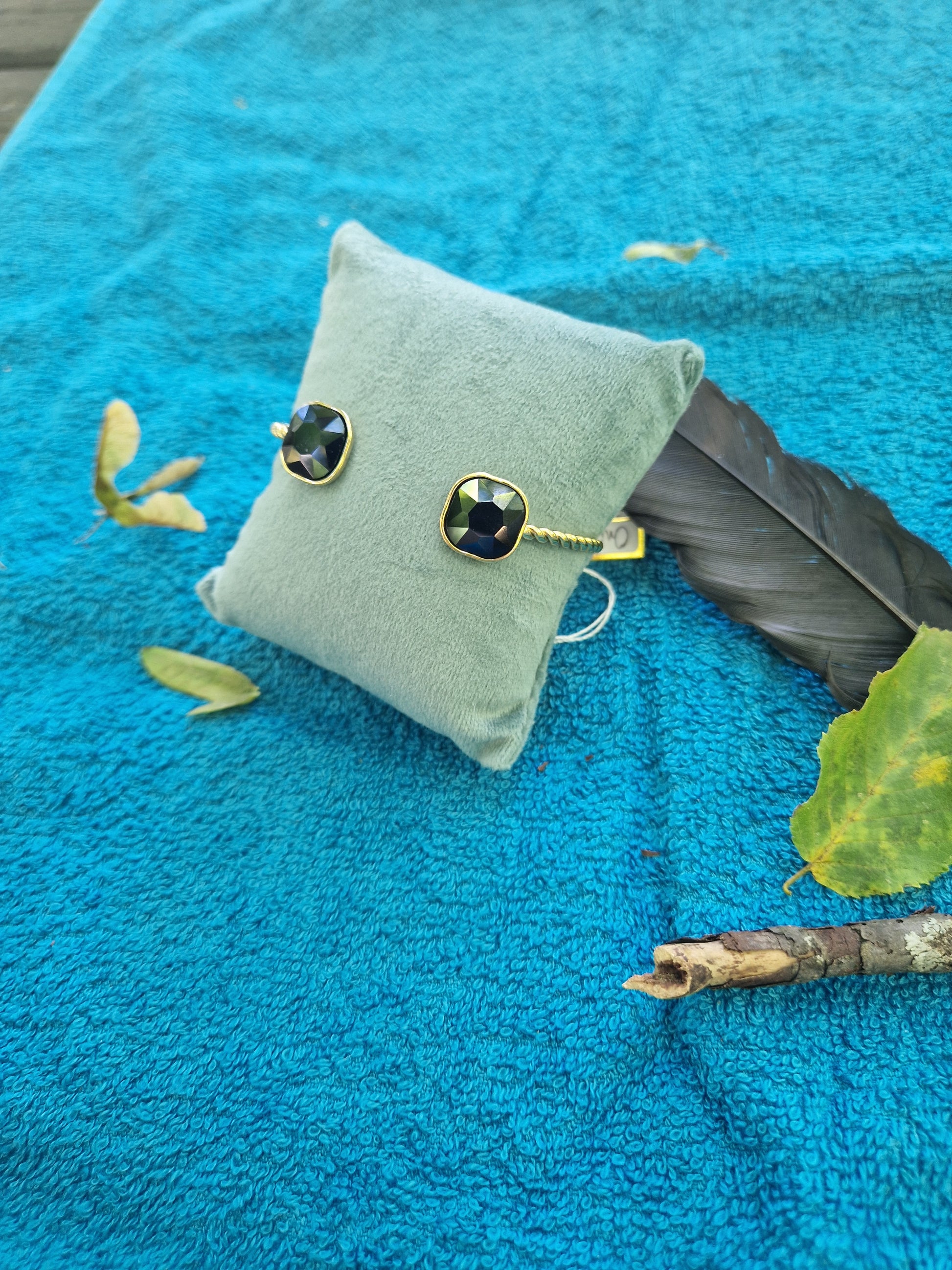 Bracelet de type jonc ajustable avec 2 cristaux colorés.