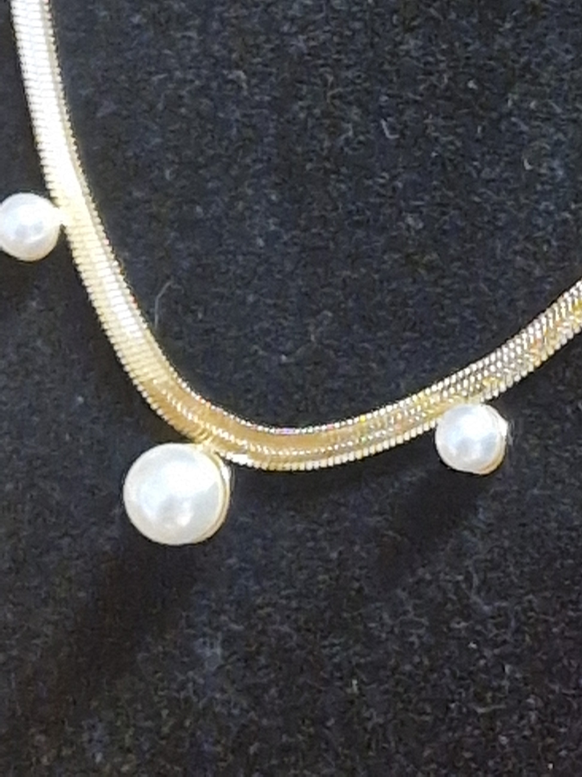 Bracelet réglable sur chaîne serpent agrémenté de perles de culture.